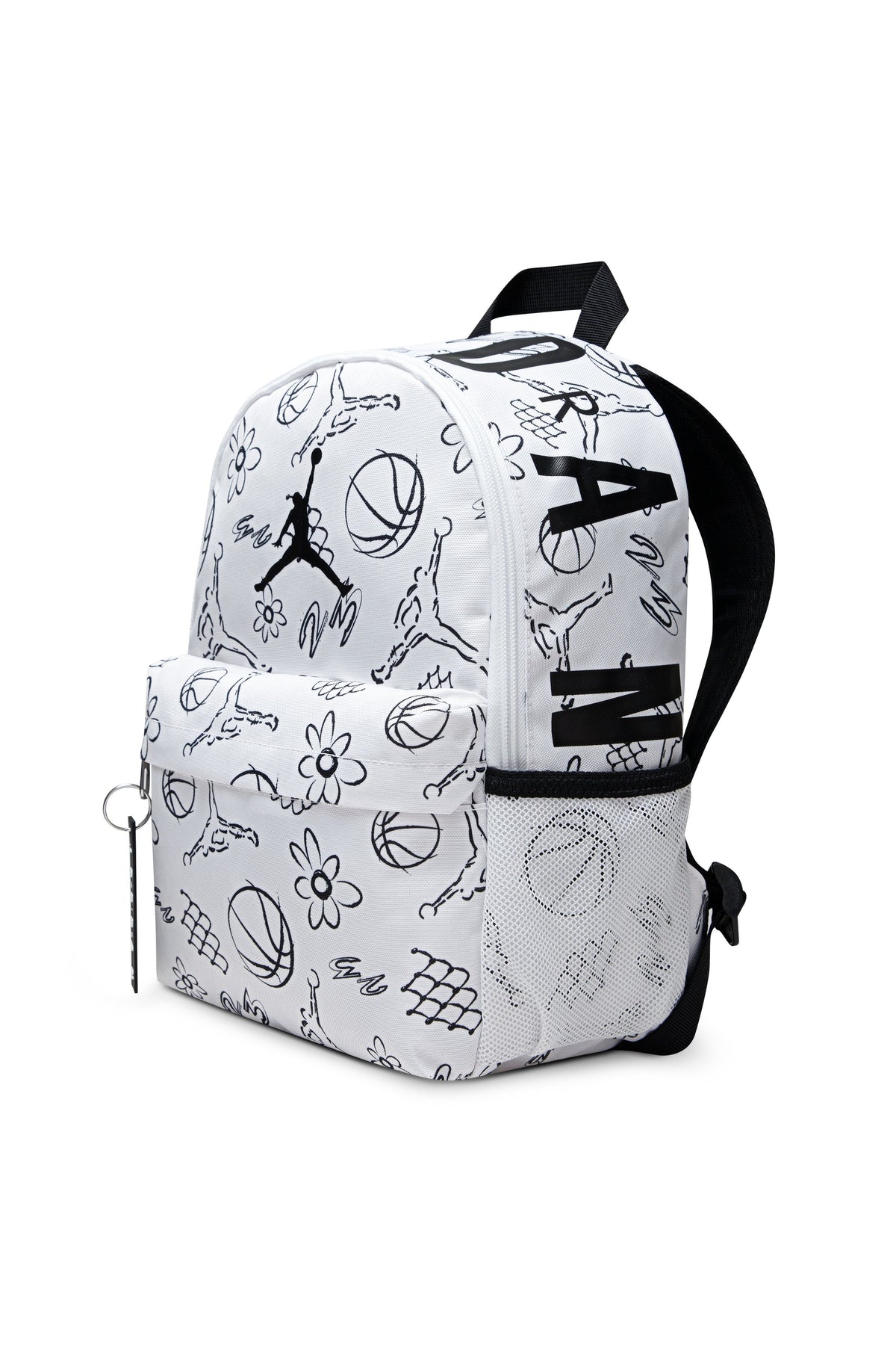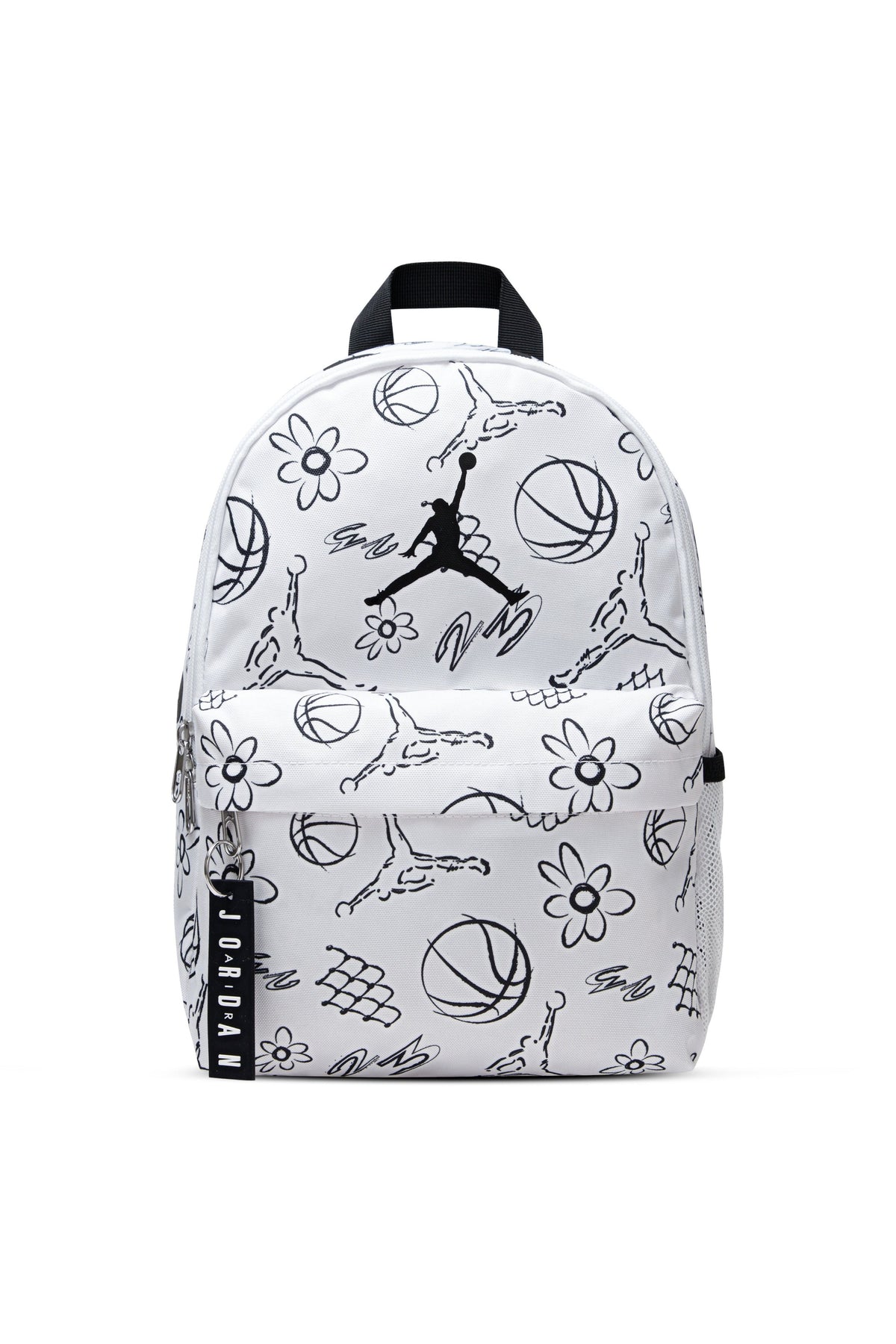 תיק גב JORDAN לבן עם הדפס פרחוני וכדורסל לילדים