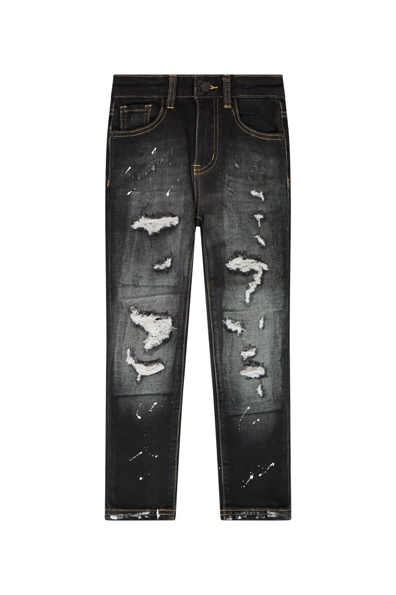 מכנסי ג'ינס ORO קרעים לילדים Black / 4Y