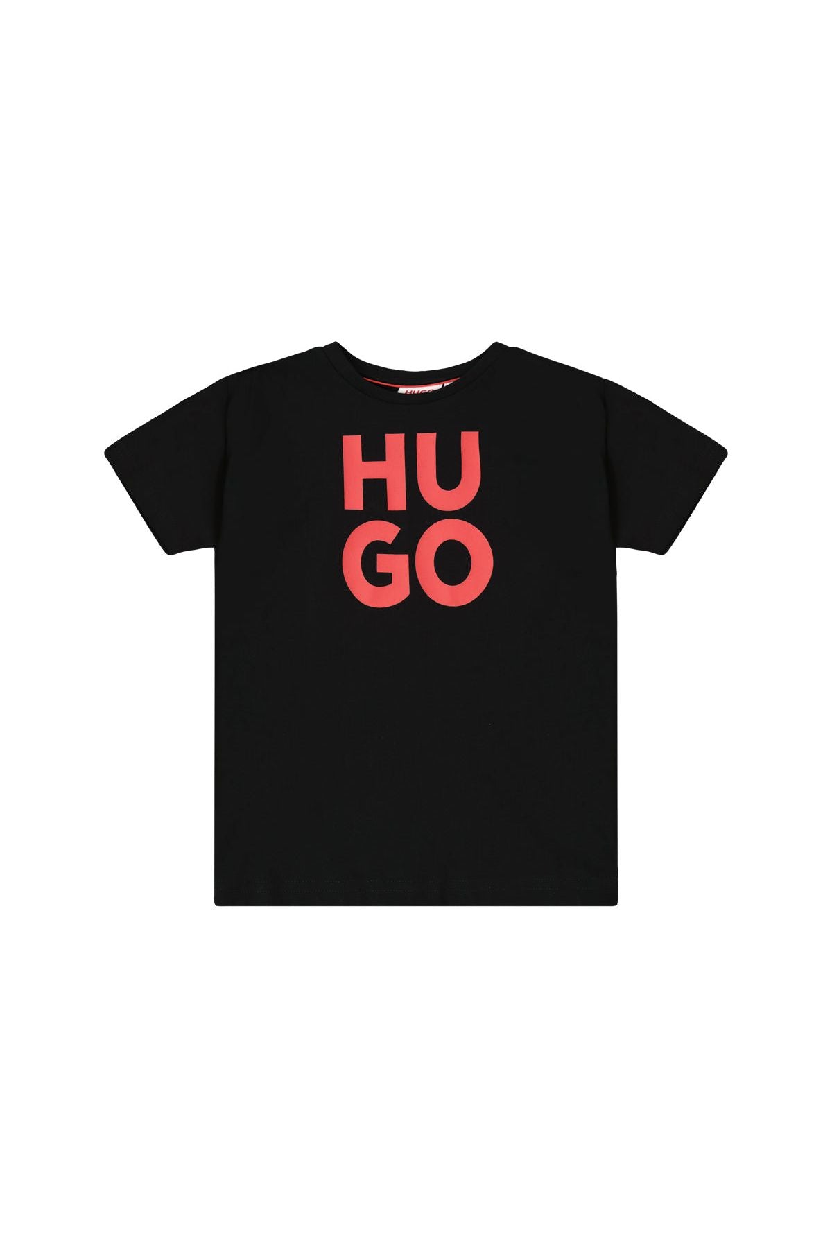 חולצת טי שרט HUGO לוגו לילדים Black / 4Y