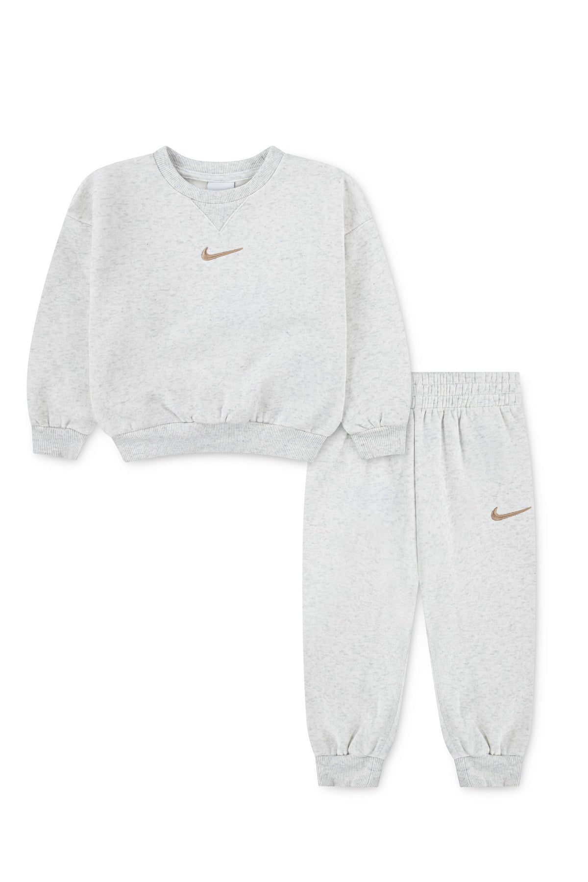 חליפת טרנינג NIKE לוגו סווש קטן בחזית לילדות BEIGE / 2Y