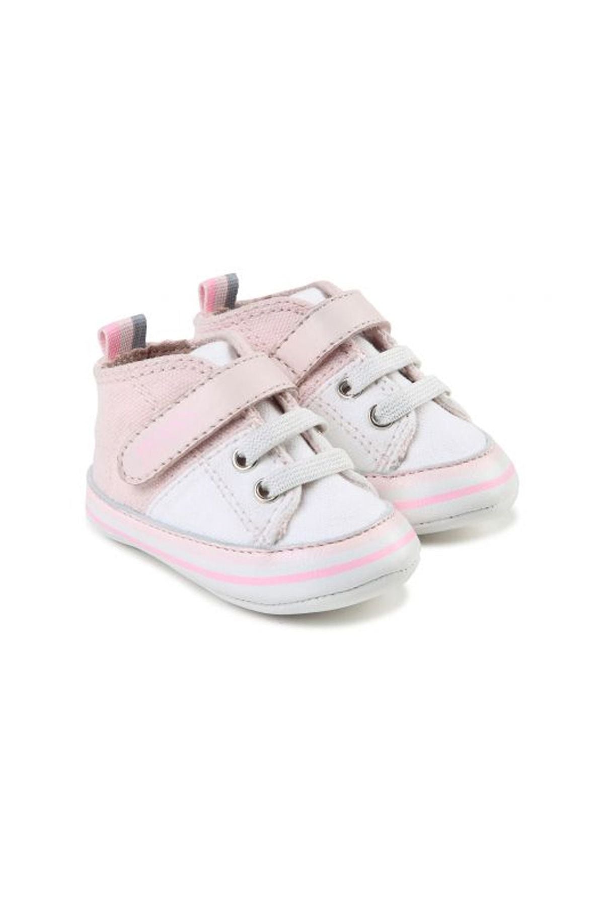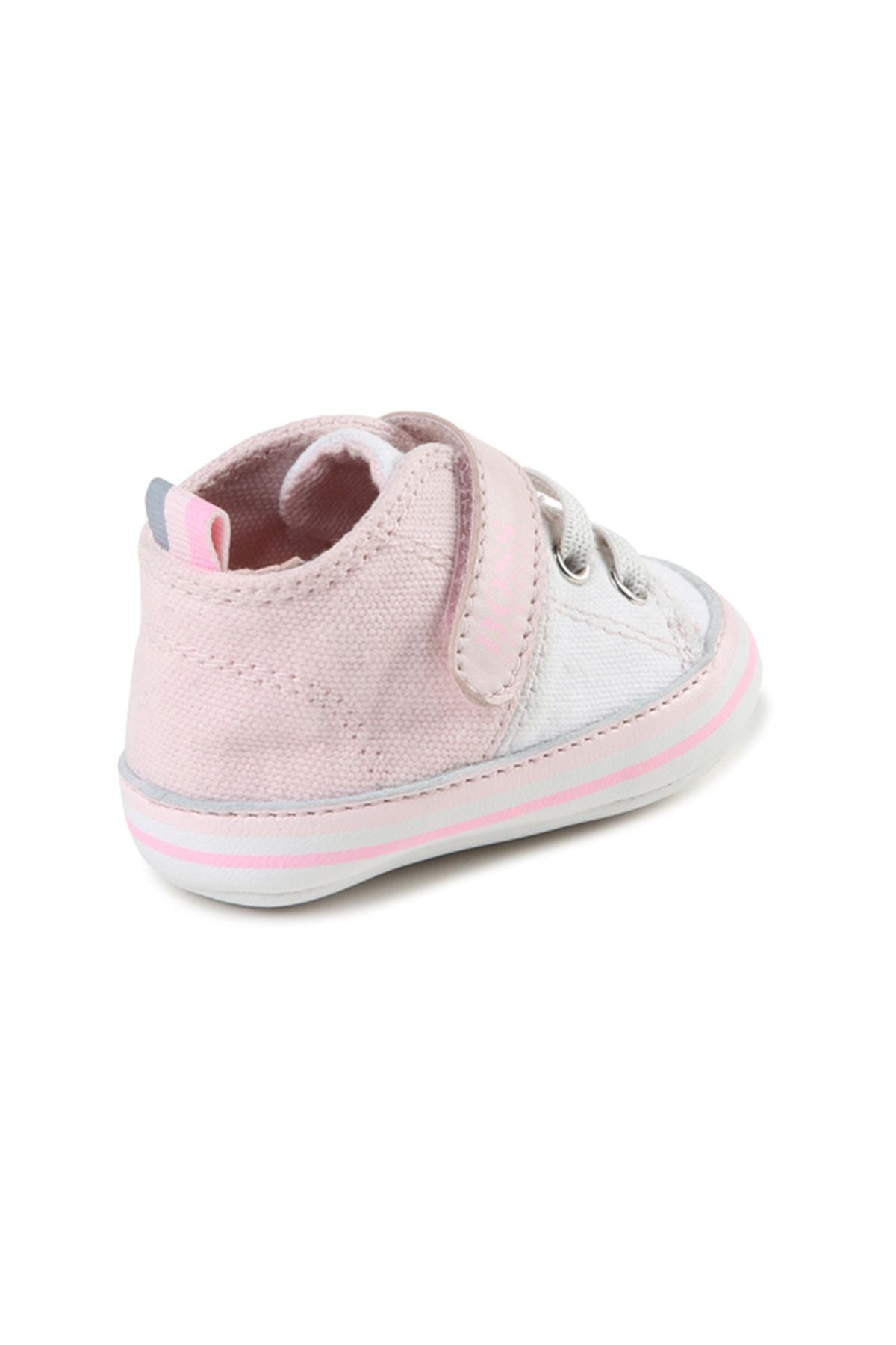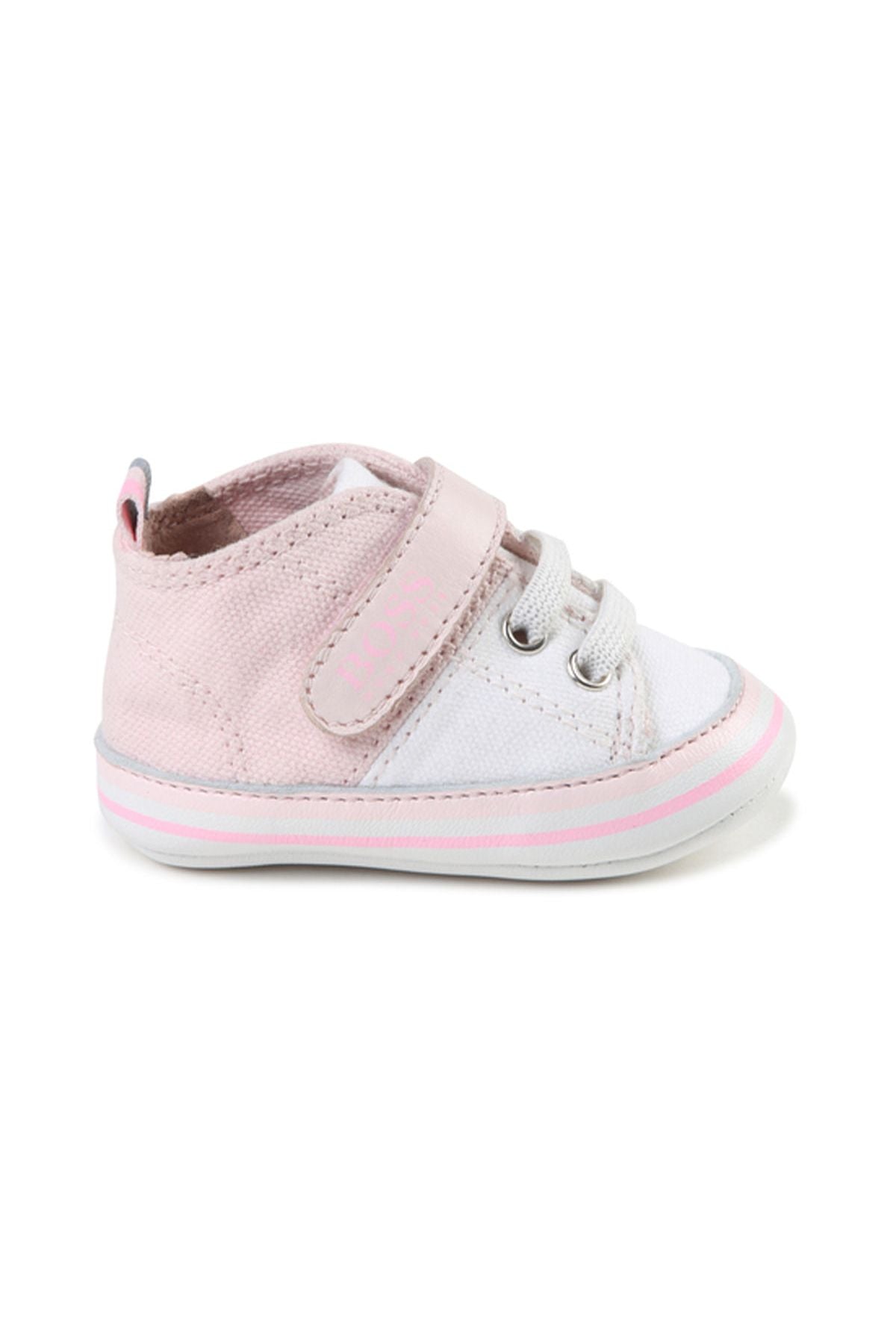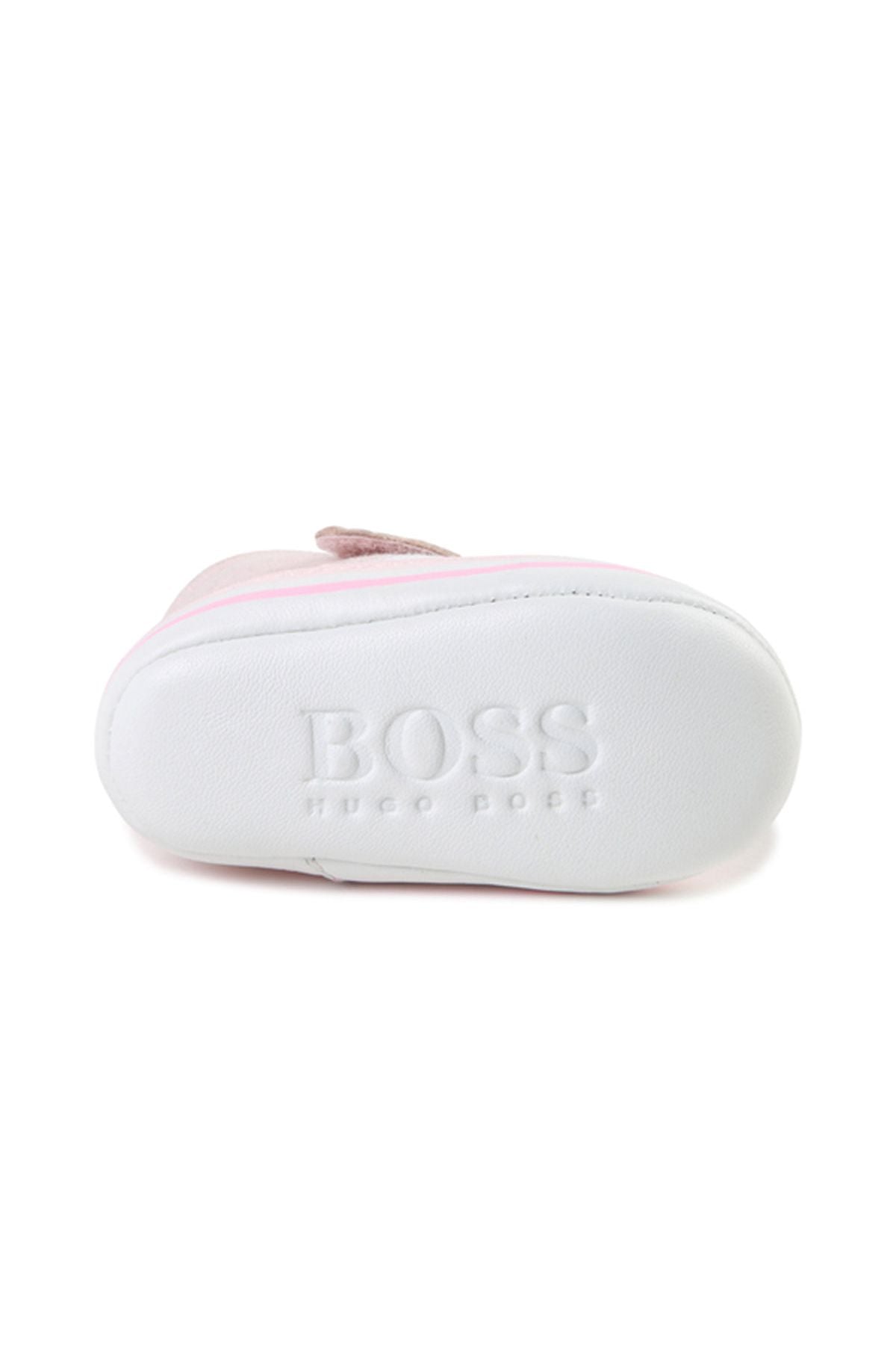 נעלי BOSS לתינוקות בצבע ורוד עדין ופרטים בלבן, מציעות נוחות מרבית ומראה מוקפד לכל יום. הנעלים עשויות מעור איכותי, מושלמות לפעילות יומיומית של תינוקות אוהבי הנוחות והסטייל.