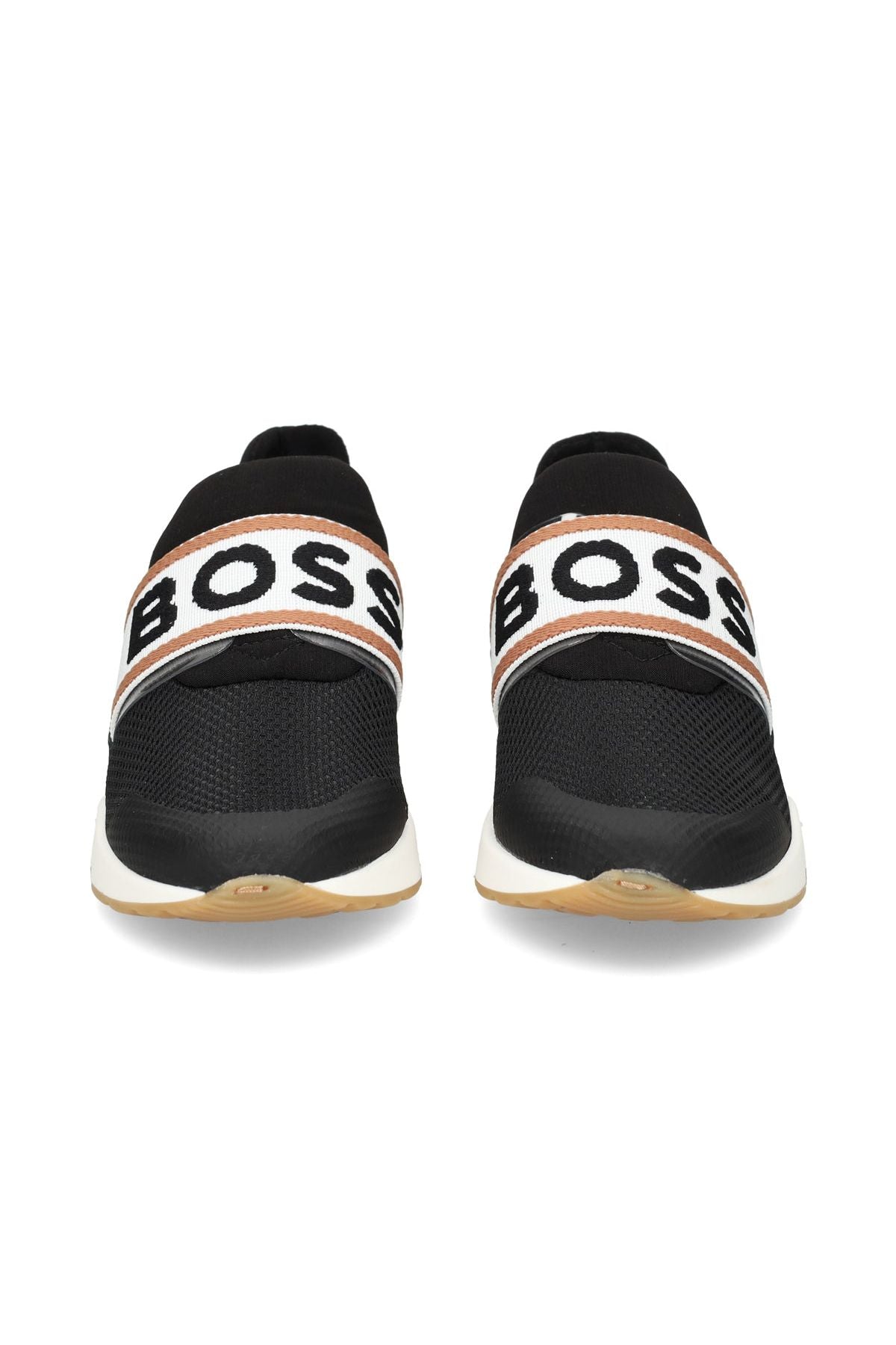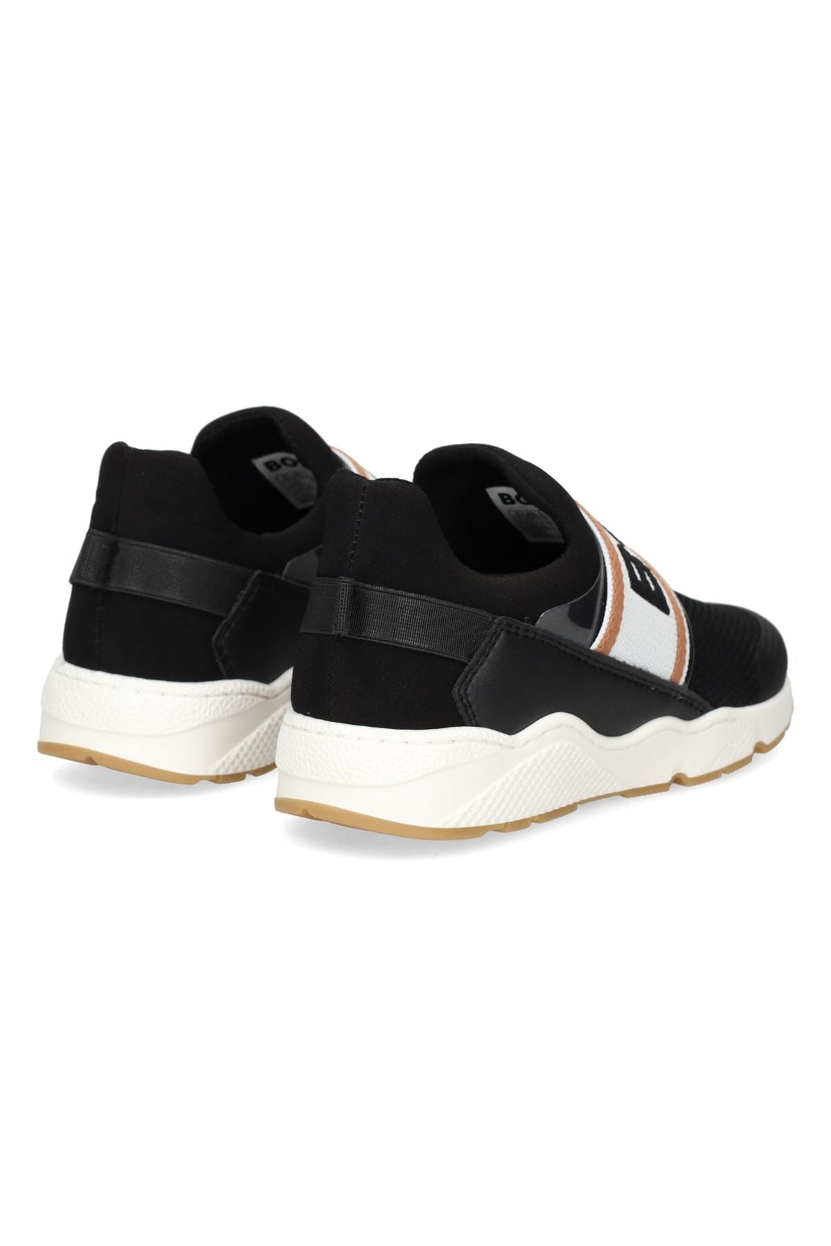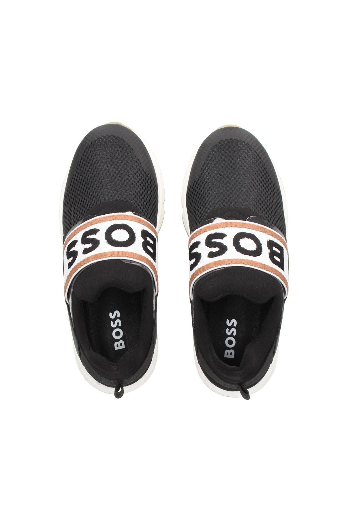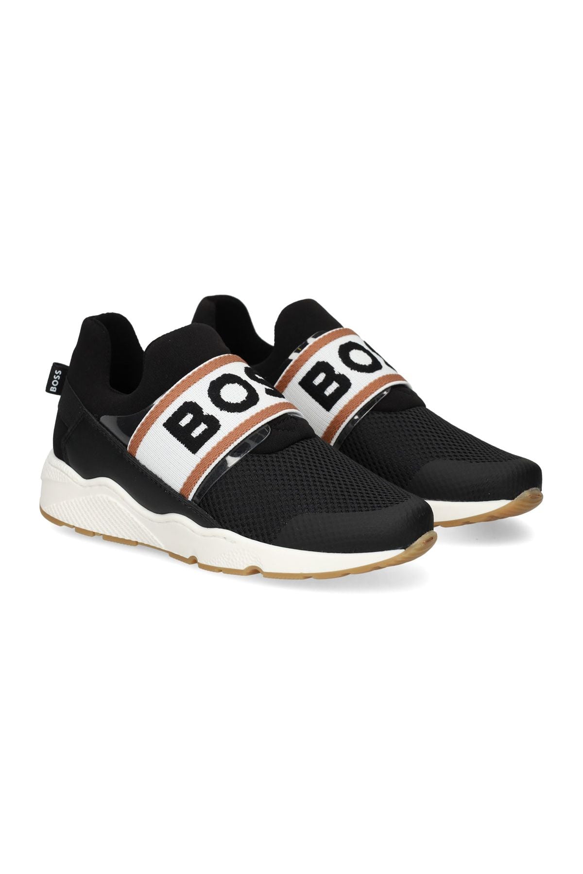 נעלי BOSS אלסטיות שחורות עם רצועה ממותגת לילדים סניקרס נוחות ואלגנטיות בעיצוב ספורטיבי עם רצועת גומי רחבה ממותגת BOSS להשלמה אופנתית. שילוב של חומרים איכותיים עם סוליה עבה לנוחות מקסימלית בכל צעד.
