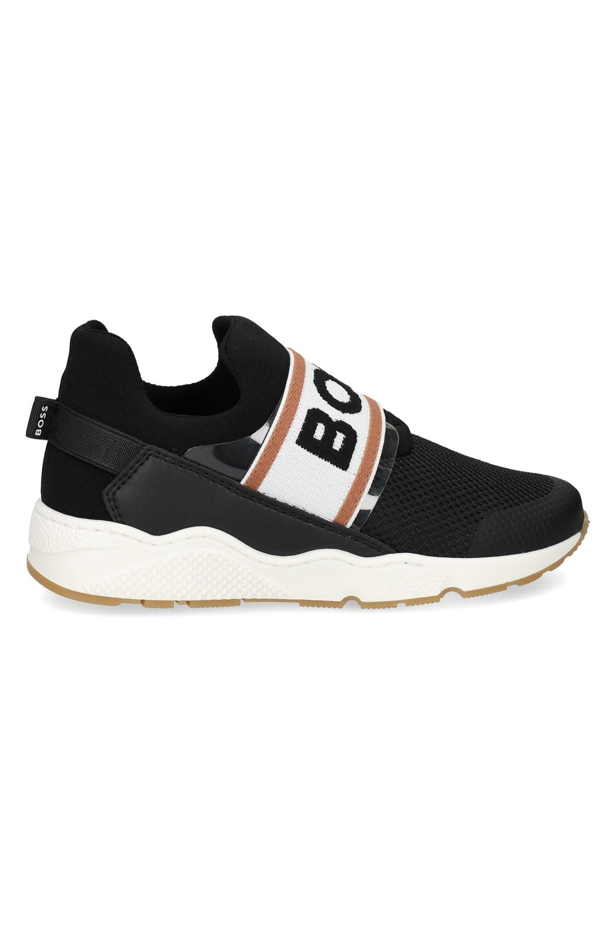 נעלי BOSS אלסטיות שחורות עם רצועה ממותגת לילדים