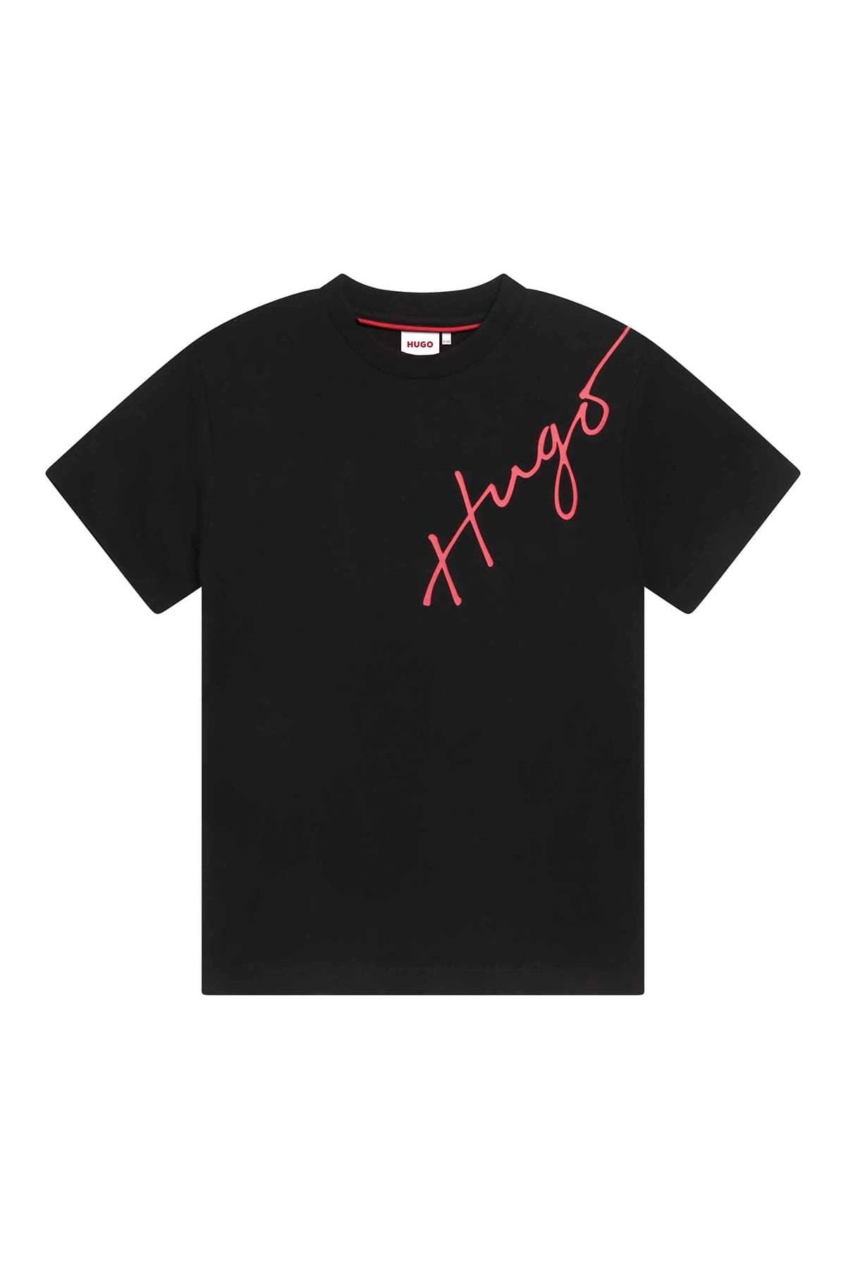 חולצת טי שחורה עם לוגו אלכסוני של HUGO, עשויה מבד איכותי שנותן תחושת נעימות ונוחות למשך כל היום. עיצוב עכשווי שמתאים במיוחד לילדים אופנתיים. מושלמת לשילוב בכל הלבשה ולכל אירוע, חולצה זו תוסיף טאץ' מודרני וצעיר למראה היומיומי של הקטנים. הלוגו הבולט מבטיח שהם יהיו מרכז הקשת בכל מקום.