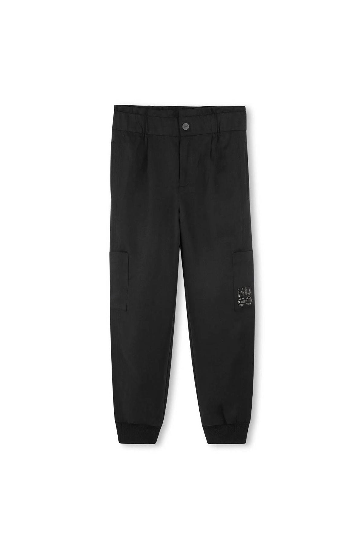 מכנסי ג'וגר HUGO שחורים עם כיסי צד ועיטור לוגו לילדות