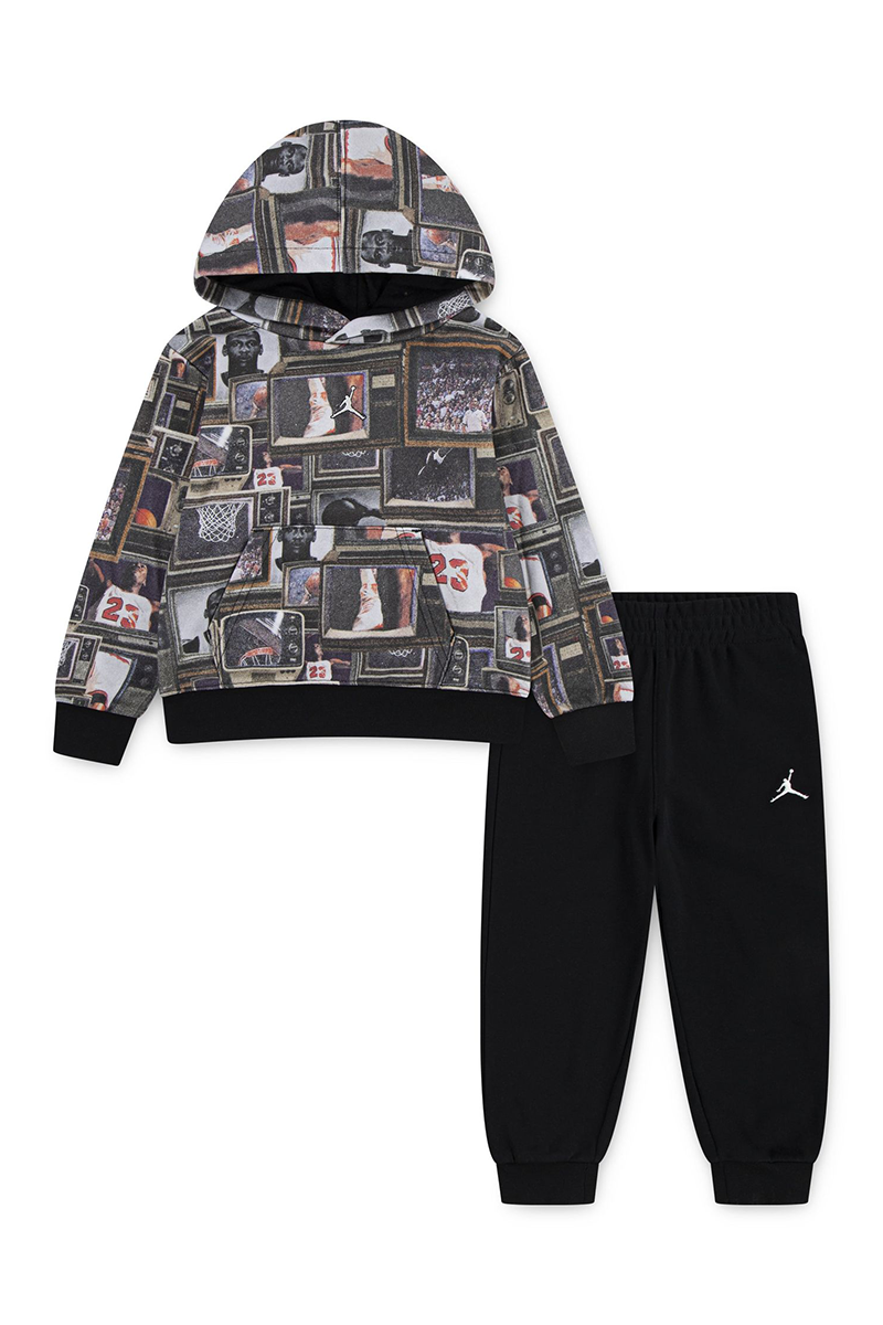 חליפת טרנינג JORDAN קפוצ’ון בהדפס ייחודי כדורסל לילדים BLACK / 2Y