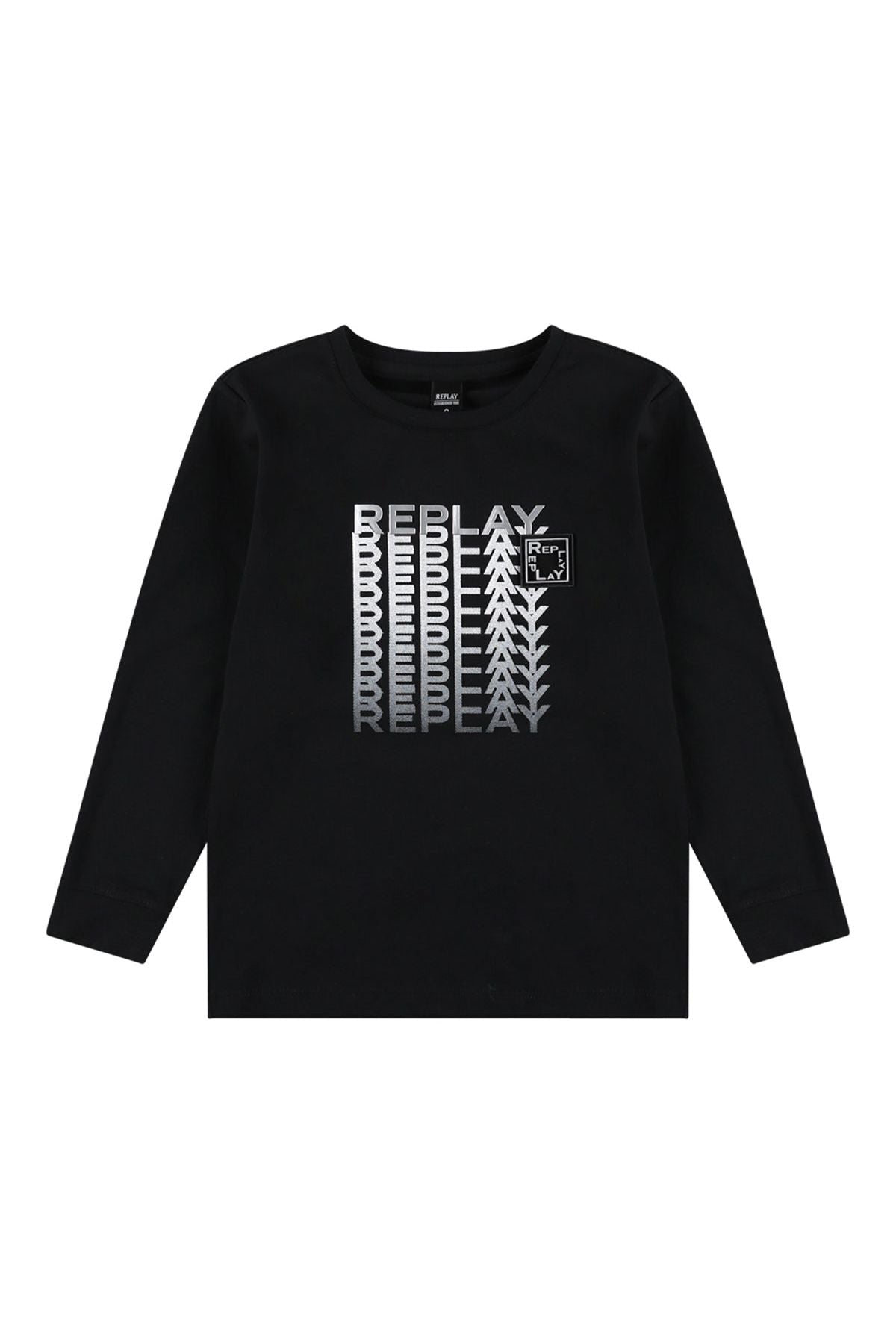 חולצת טי שרט REPLAY ארוכה לוגו משוכפל לילדים