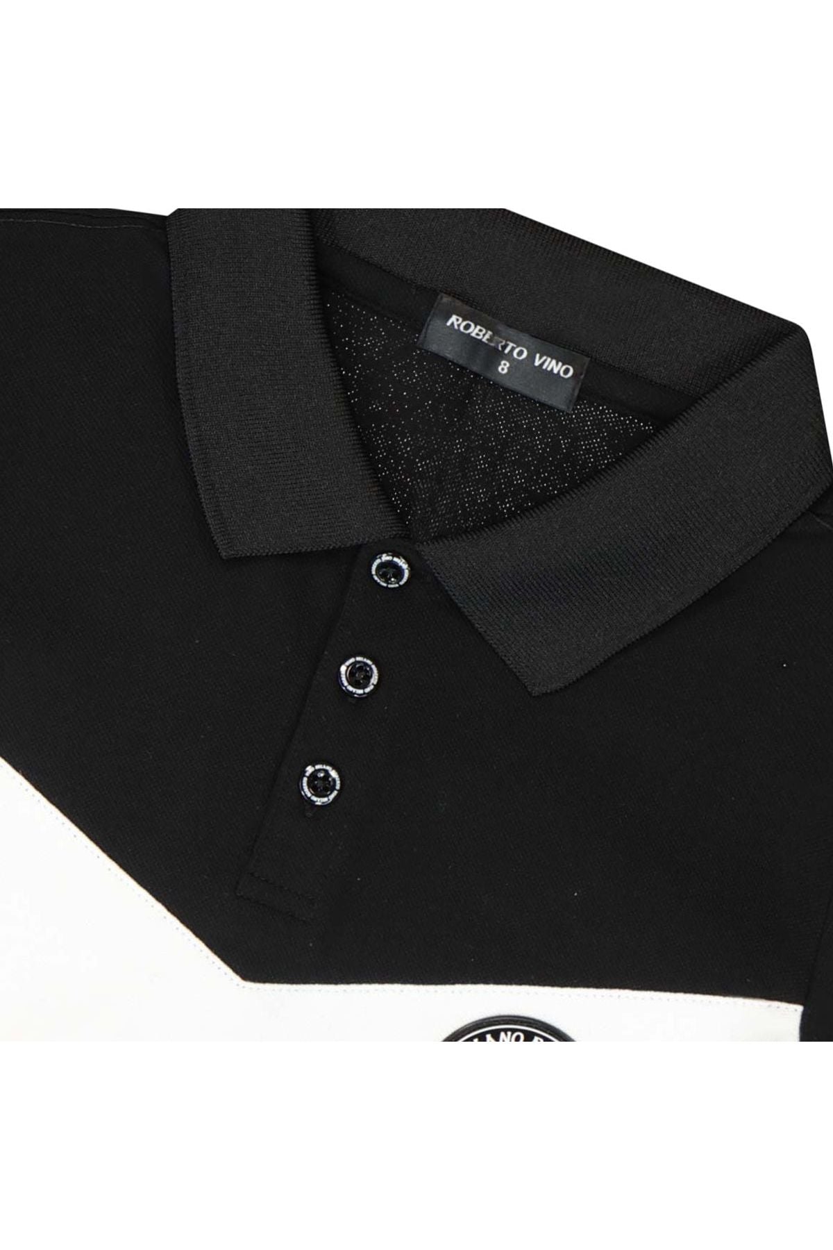 חולצת צווארון ROBERTO VINO בעיצוב אלגנטי לילדים עיצוב קלאסי עם שילוב צבעים ייחודי צווארון פולו עם כפתורים לוגו Roberto Vino רקום בחזה מתאים ליום-יום, ואירועים חגים קז'ואליים **הרכב בד:95% כותנה 5% לייקרה