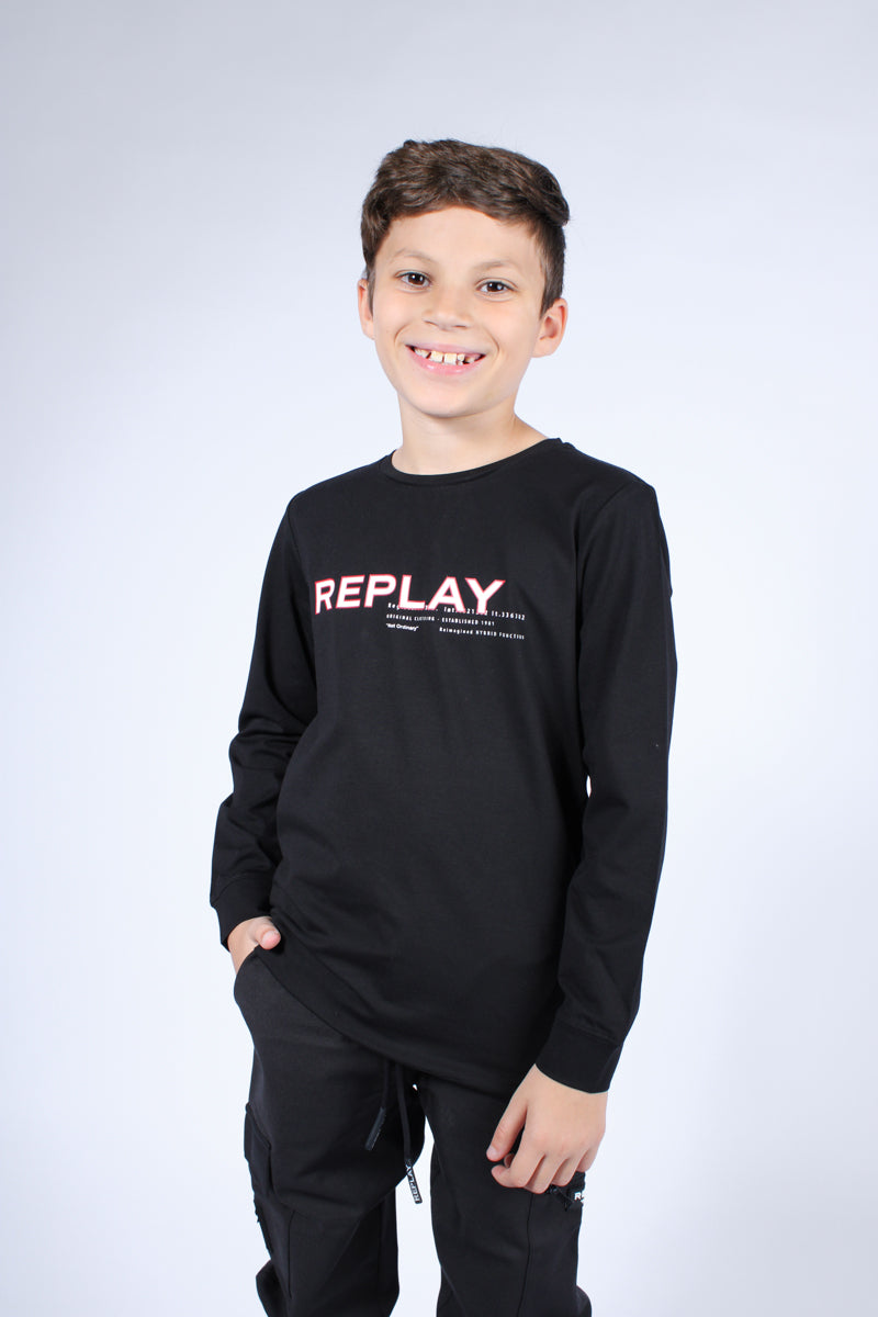 חולצת טי שרט REPLAY לילדים עם שרוול ארוך